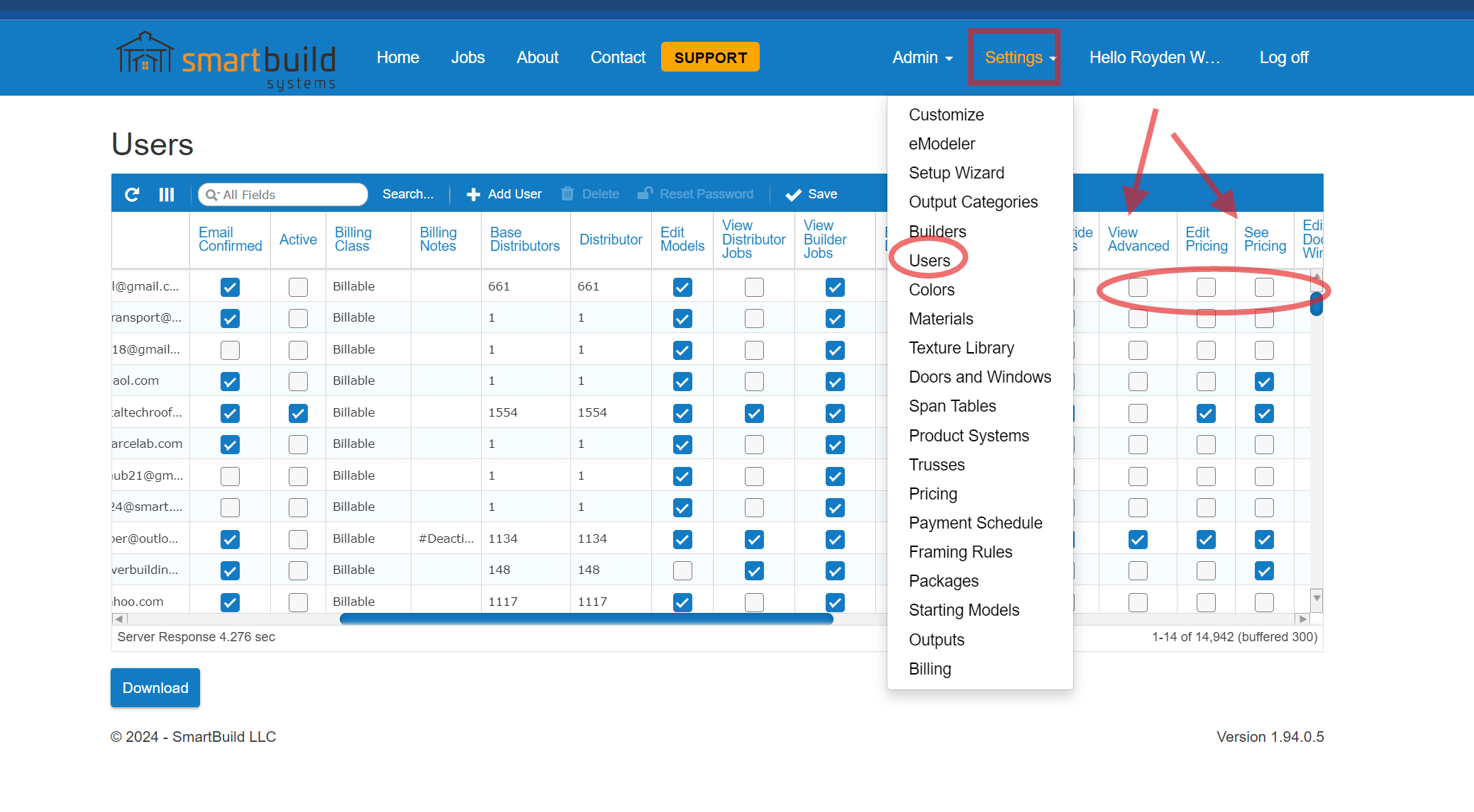 4. After you have confirmed they followed the Register steps and registered their new account, you need to update their user permissions so they can use the software. Go to Settings_Users and find their username and update the permissions so they can access what they need.